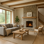 4. Уютные акценты – камин, мягкая мебель, ковры, теплый текстиль.