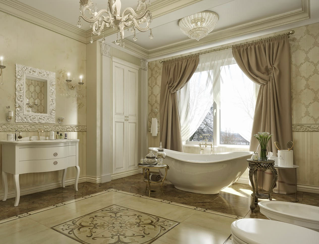 Дизайн интерьера ванной в классическом стиле